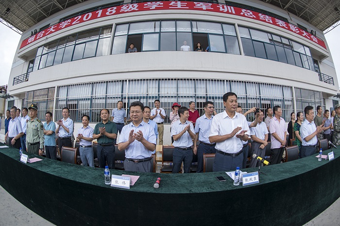 副校长、军训工作领导小组组长邓昌亮作总结讲话。他高度赞扬了受训同学和施训教官的优秀表现,充分肯定了军训团教导员、指导员和保障工作人员的精心组织与相互配合,对为军训工作做出重大贡献的部队官兵表示衷心的感谢。“随着军训的结束,同学们将转入大学学习生活”。邓昌亮希望同学们继续发扬军训精神,巩固军训成果,志存高远,心系天下;希望同学们勤学苦练,学以致用;希望同学们脚踏实地,惟以求真,秉承“守信、求实、好学、力行”的校训,在未来的四年里点燃并实践青春梦想,学校将见证同学们的每一步成长。
