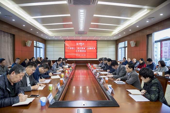 学校“不忘初心、牢记使命”主题教育领导小组办公室成员、各指导组组长以及二级单位党组织书记参加了会议。