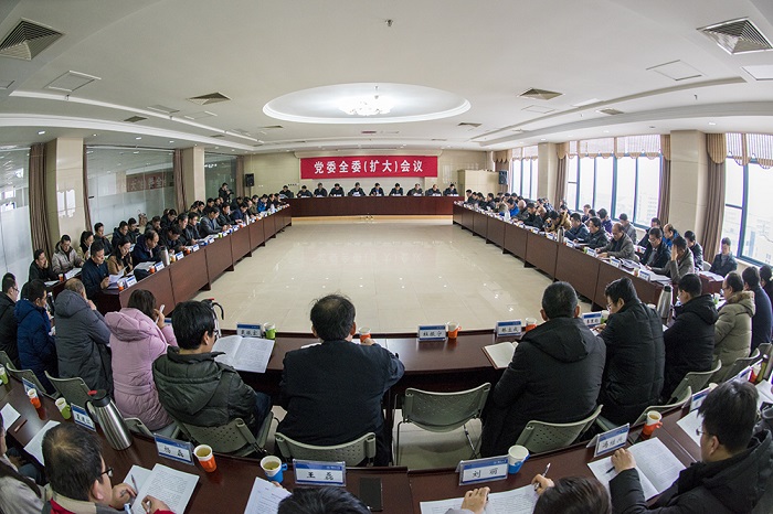 1月11日上午,学校在综合楼六楼中厅会议室召开党委全委(扩大)会议。党委委员、纪委委员,各分党委、党总支、直属党支部书记,各学院院长、教学部主任,各部处室、直属单位主要负责人,省、市人大代表、政协委员,教师代表参加会议。会议由党委副书记张殿臣主持。