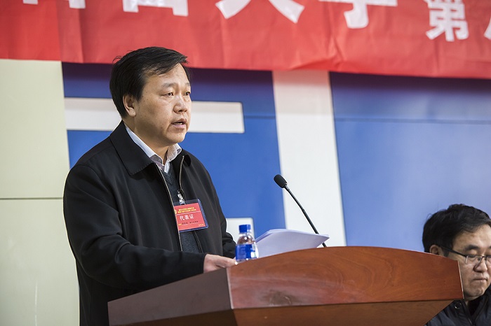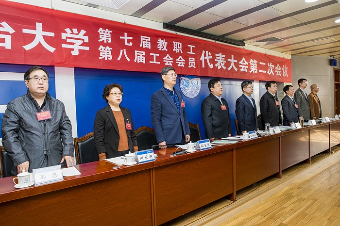 校长郭善利代表学校作工作报告。报告对学校2018年的工作进行了全面回顾和总结,对取得的成绩和存在的问题进行了客观评价和分析,并提出了2019年的目标和举措。2018年,学校党委坚定自觉地用习近平新时代中国特色社会主义思想统一全校师生的思想和行动,遵循教育发展规律、人才培养规律,深入贯彻落实“一二三”战略部署,奋力开创高水平大学建设的新局面,学校内涵建设持续加强,核心竞争实力不断提升,一些工作取得了新突破。郭善利指出,在取得成绩的同时,我们也要清醒地认识到学校发展还存在一些问题与不足,要高度重视并采取有效措施切实加以解决。2019年工作的总体要求是:以习近平新时代中国特色社会主义思想为指导,深入学习贯彻党的十九大精神和习近平总书记视察山东视察烟台重要讲话精神,按照全国、全省教育大会的部署安排,坚持立德树人,全面深化综合改革,理顺体制机制,改善治理体系,提高治校办学能力,稳步提升学校综合实力,加快特色鲜明、部分学科具有国际影响力的高水平大学建设步伐。要坚持从严治党,扎实开展党建思想政治工作;提高政治站位,切实抓好各项整改落实工作;坚持立德树人,大力提高教育教学工作质量;推进资源整合,着力夯实事业发展保障条件;健全完善机制,切实提高学校核心竞争力;拓宽工作渠道,不断深化对外合作交流工作;转变工作作风,稳步提高各项管理服务水平。