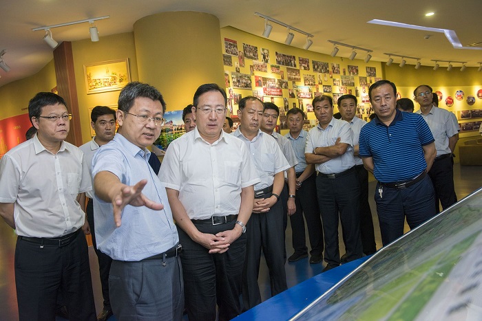 张伟、孙祥斌还陪同客人参观了校史展厅。