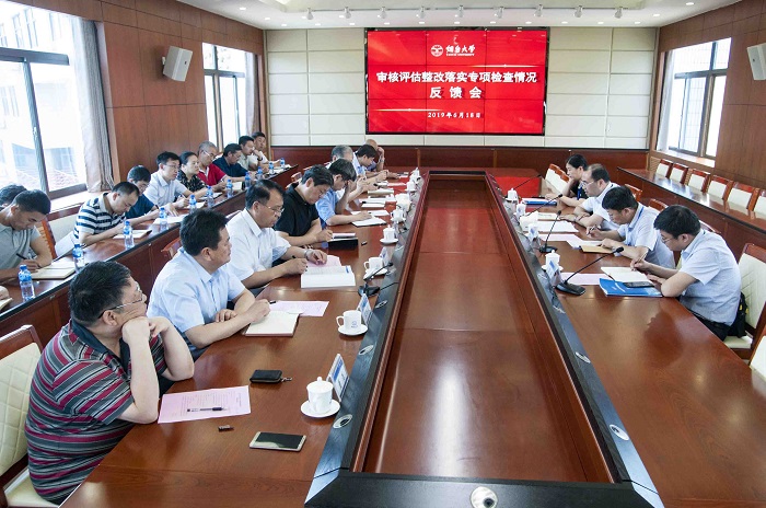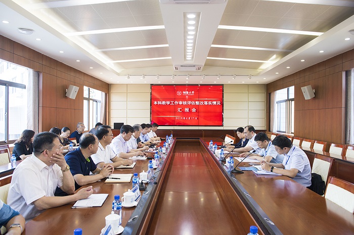 校长郭善利代表学校对专家组一行表示欢迎,并从定位与目标、师资队伍建设、教学资源建设、人才培养过程、学生发展、教学质量保障等6个方面向专家组汇报整改落实情况。郭善利表示,学校将以此次审核评估整改为契机,深入贯彻全国、全省教育大会精神和新时代全国高等学校本科教育工作会议精神,坚持“以本为本”,进一步强化教学中心地位,持续提升人才培养质量,潜心打造一流本科教育,为建设特色鲜明、部门学科具有国际影响力的高水平大学而努力奋斗。