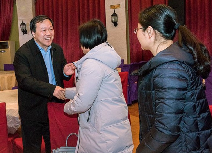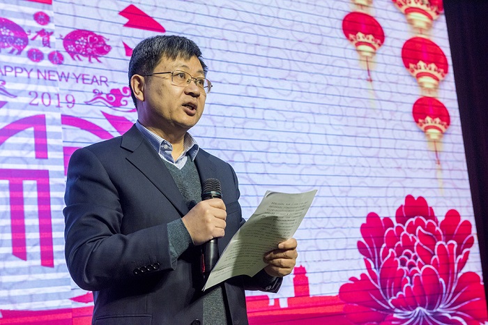 2月2日上午,于维纮学术交流中心一楼大厅内张灯结彩喜气洋洋,校领导张伟、郭善利、孙祥斌、邓昌亮、郝曙光、王强,曾担任学校领导职务的韩向利、郭明瑞、刘永镒、于文书及原校长助理陆学明,同师生员工代表欢聚一堂,共贺己亥新春。