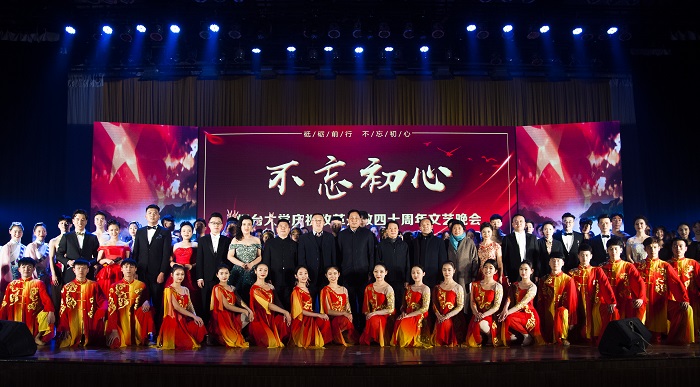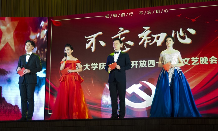 不忘初心跟党走,牢记使命勇担当。为庆祝改革开放40周年,讴歌国家、学校快速发展的史诗成就,12月6日晚伴随着今冬第一场瑞雪,sunbet申搏官方网站“不忘初心”庆祝改革开放40周年文艺晚会在弘毅厅举行。校领导张伟、张殿臣、周胜良,学校机关、学院负责同志,师生代表七百余人一同欣赏了晚会。晚会由党委宣传部主办,音乐舞蹈学院承办。