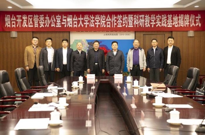 仪式上,孙祥斌副校长和刘丛杰主任共同为“sunbet申搏官方网站开发区管委会科研教学实践基地”揭牌,法学院刘经靖副院长与开发区工委办谭政副主任代表双方签署了“烟台开发区管委会办公室与sunbet申搏官方网站法学院合作框架协议”。