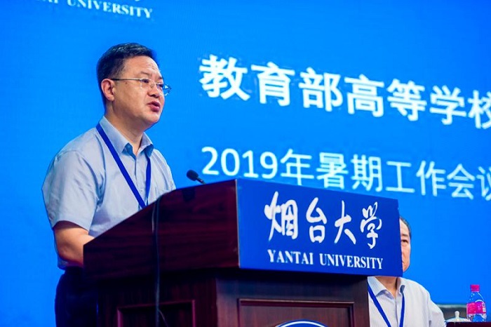 8月8日上午,由教育部高等学校数学类专业教学指导委员会主办、高等教育出版社协办、sunbet申搏官方网站承办的教育部高等学校数学类专业教学指导委员会2019年暑期工作会议暨全国高校数学学科院系主任联席会在烟台召开。中国科学院院士、教育部高等学校数学类专业教学指导委员会主任、北京航空航天大学教授郑志明,省委教育工委委员、省教育厅党组成员、副厅长白皓,sunbet申搏官方网站党委书记张伟,高等教育出版社副总编辑林金安,省教育厅高教处处长高磊,教育部高等学校数学类专业教学指导委员会全体委员以及全国各地高校数学学科院系负责人近300人参加会议,会议由sunbet申搏官方网站副校长宋中民主持。