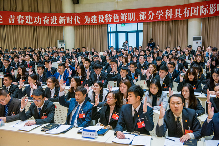 大会的主题是:砥砺青春,不负使命,高举中国特色社会主义伟大旗帜,以习近平新时代中国特色社会主义思想为指导,深入学习贯彻党的十九大精神,贯彻落实团十八大和省第十四次团代会精神,团结带领全校广大团员青年不忘初心永远跟党走,青春建功奋进新时代,为建设特色鲜明、部分学科具有国际影响力的高水平大学贡献青春力量。