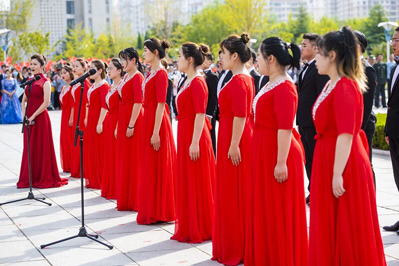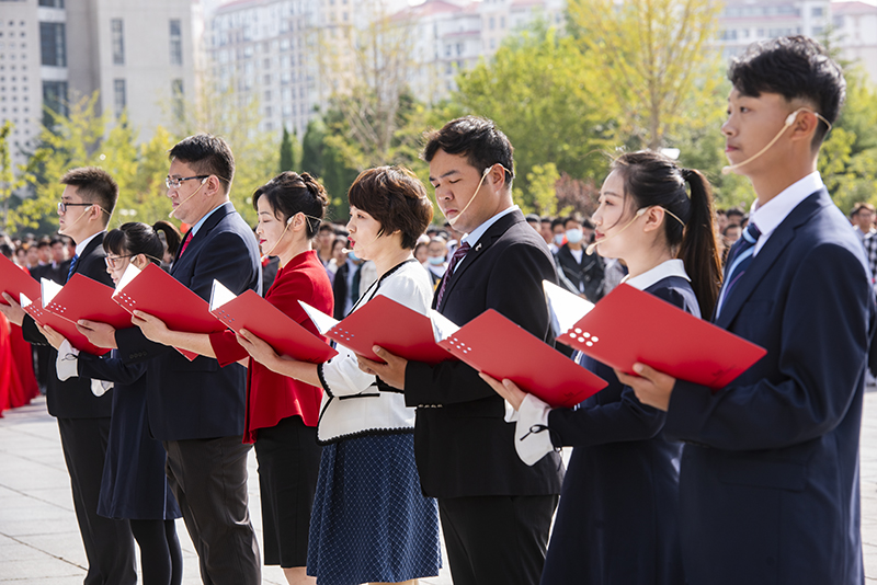 升旗仪式上,2020级新生林玉青同学以《青春奋进 筑梦家国》为题进行了国旗下的演讲,一字一句传递着用青春奋斗书写使命担当的信心和力量。歌曲《中国力量》致敬家国情怀,讴歌深沉昂扬的中国力量。“一场惊心动魄的抗疫大战,一场艰苦卓绝的历史大考,创造了人类同疾病斗争史上又一个英勇壮举。”飘扬的国旗下,师生代表配乐诗朗诵《这是二〇二〇年的中国》,饱含深情地回顾了以习近平同志为核心的党中央团结带领全国人民进行伟大抗疫斗争的非凡历程,礼赞奋战在各条战线的抗疫英雄。“一条大河波浪宽,风吹稻花香两岸……”活动尾声,当这动听而熟悉的旋律响起时,在场全体师生自发挥舞着手中的国旗,共同深情唱响《我的祖国》,用歌声抒发着对伟大祖国最深沉和自豪的热爱。