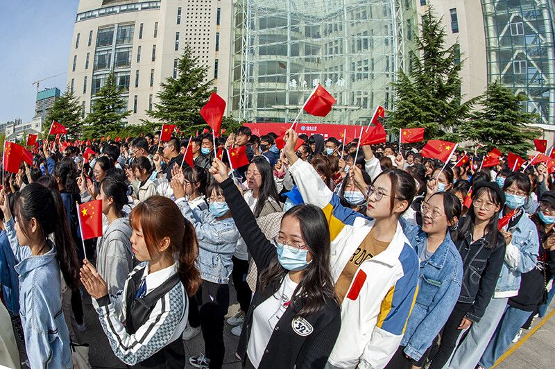 十月的sunbet申搏官方网站校园里秋色绚烂,国旗广场上师生手中挥舞的五星红旗绚丽夺目,一抹抹“中国红”凝聚着无比磅礴的中国力量和壮志凌云的时代梦想。