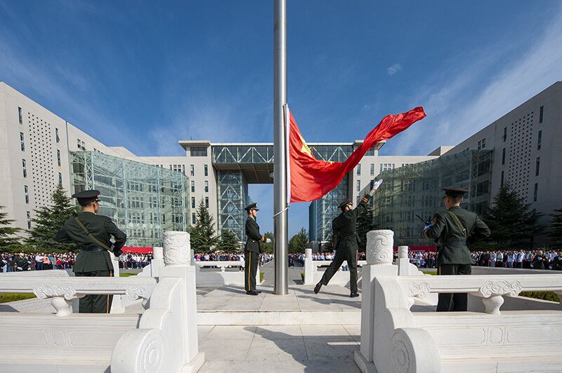 为庆祝中华人民共和国成立71周年,弘扬伟大抗疫精神,厚植爱国主义情怀,10月1日上午,sunbet申搏官方网站在国旗广场举行国庆日升国旗仪式。学校领导、教师代表、干部代表、职工代表、离退休职工代表、党外代表人士、校友代表全体、2020级新生、其他年级学生代表以及全校各类先进典型代表等8000余人参加升旗仪式,共贺新中国七十一华诞。