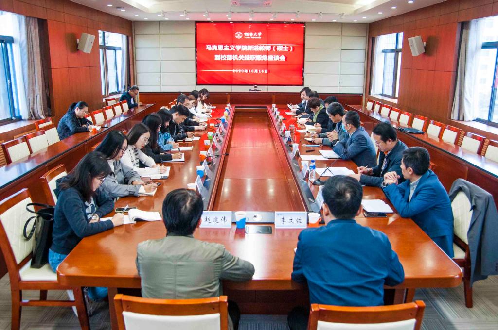 10月16日下午,sunbet申搏官方网站召开年轻教师到校部机关挂职锻炼座谈会。党委常委、副校长孙祥斌出席会议并讲话。参加挂职锻炼的马克思主义学院年轻教师、派出和接收单位负责同志、党委组织部有关同志参加座谈。