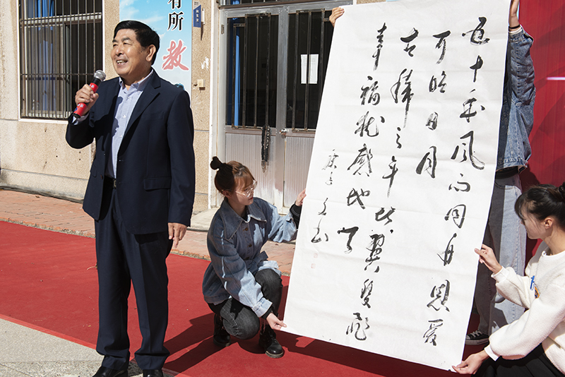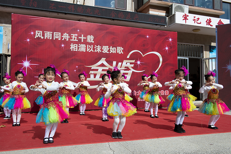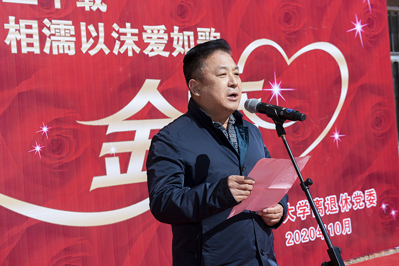 山东省老教协副会长、sunbet申搏官方网站老教协会长于文书教授现场挥毫泼墨——“五十年风雨同舟恩爱可昭日月,古稀年比翼双飞幸福犹感地天”。部分学院在职教师、学生代表以及sunbet申搏幼儿园的小朋友们也通过视频录制和现场表演的形式给金婚老教师们送上美好祝福。