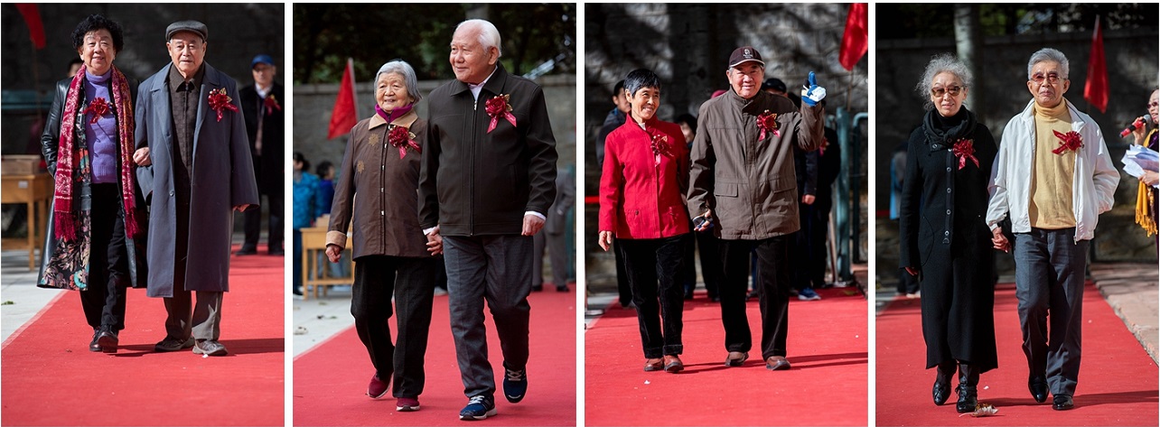 “新婚之乐记犹新,岁月增长爱益深。鸾凤和鸣是常态,相濡以沫五十春,国丰民富逢盛世,里安家和慰当今,愿携金婚诸朋友,与时俱进钻石婚。”活动现场,1985年来校工作的sunbet申搏官方网站图书馆首任馆长郭其新教授现场赋诗《金婚抒怀》。谈及参加本次活动,法学院离休教师王庆明教授表示非常高兴,他感谢学校对老同志的用心、用情,组织了这样一场充满了温情又极具仪式感的金婚庆典活动。当天与老伴一起携手走过红毯的人文学院退休教师赵凤梧也动情地说:“我走上红地毯的那一刻,激动得简直说不出话来,真心感恩为这次活动付出心力的校处领导、全体工作人员及学生助理了!60年的钻石婚在等待着我们,让我们张开双臂,翘首企盼!”
