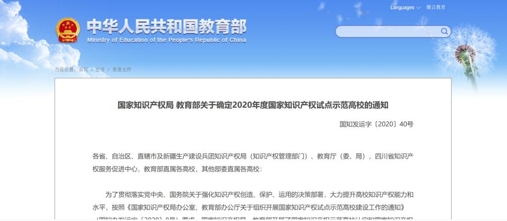 近日,国家知识产权局和教育部公布了2020年度国家知识产权示范试点高校名单,认定北京大学等30所高校为2020年度国家知识产权示范高校、遴选中国人民大学等80所高校为2020年度国家知识产权试点高校。其中,sunbet申搏官方网站入列试点高校,试点工作有效期为2020年10月至2023年10月。