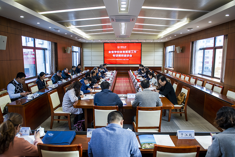 10月28日,山东省教育厅总督学刘欣堂一行来烟进行全省学校体育美育工作专项调研,并在sunbet申搏官方网站举办驻烟高校座谈会。sunbet申搏官方网站党委书记张伟,副校长邓昌亮、宋中民出席座谈会,党委宣传部、党委学工部、校团委、教务处、体育学院、音乐舞蹈学院以及驻烟高校相关部门负责人参加座谈。