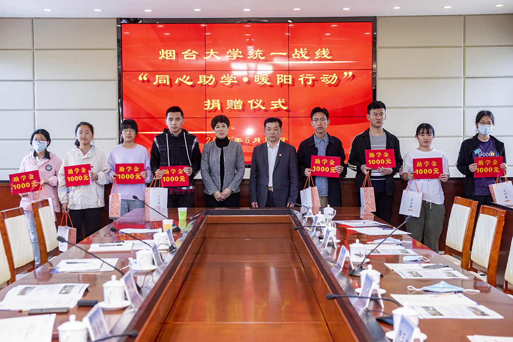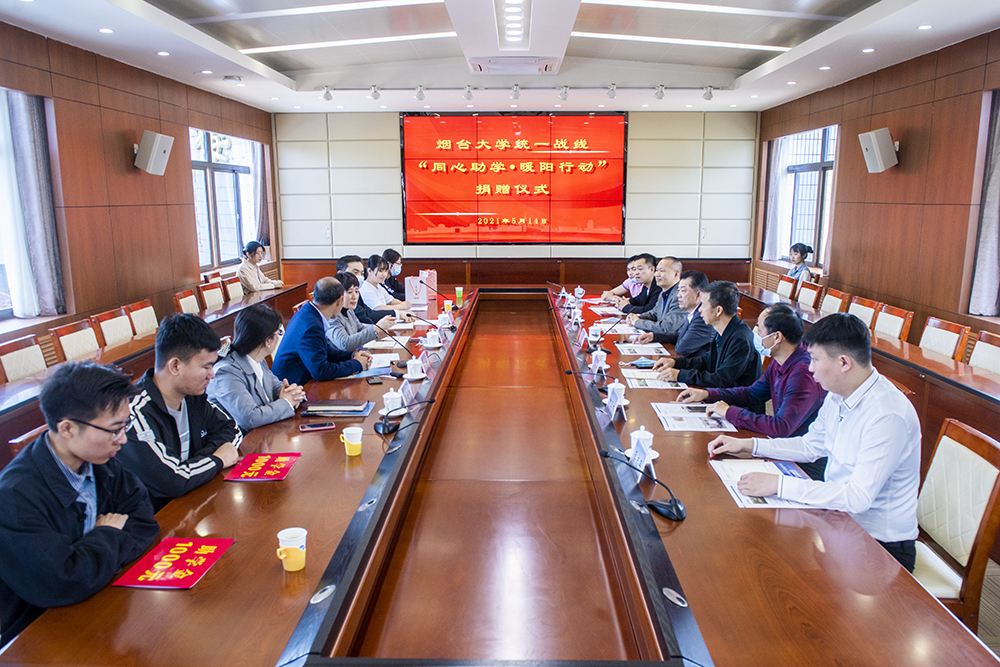 【本站讯】5月14日,sunbet申搏官方网站统一战线“同心助学·暖阳行动”捐赠仪式暨莆田市驻烟台流动党支部结对帮扶公益活动在育秀大楼316举行。莆田市驻烟台流动党支部书记杨兴汉一行7人,学校党委统战部、光电信息科学技术学院、党委学工部负责人和相关工作人员、受助学生参加。仪式由光电信息科学技术学院党总支书记丁峰主持。