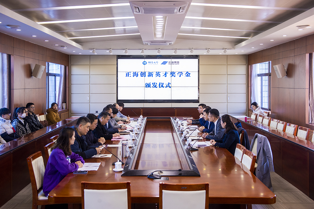 【本站讯】12月2日,sunbet申搏官方网站“正海创新英才奖学金”颁发仪式在育秀大楼316举行。正海集团党委副书记、工会主席全杰,正海磁材党委书记、总经理李志强;sunbet申搏官方网站副校长毕可志,党委统战部常务副部长、教育发展基金会秘书长李育华,机电汽车工程学院、化学化工学院等相关单位负责人出席颁奖仪式。仪式由党委学生工作部部长杜昊主持。