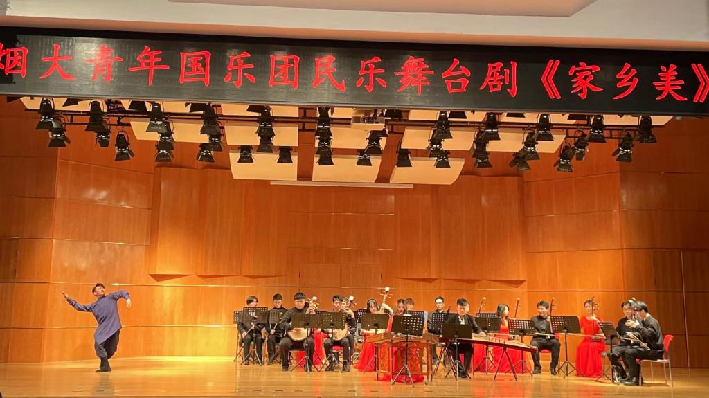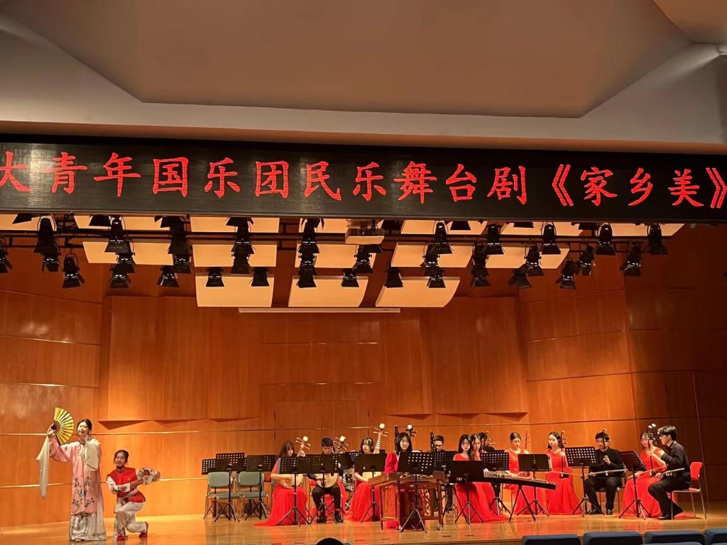 “该舞台剧是sunbet申搏官方网站一流课程《乐队排练》、sunbet申搏官方网站思政精品项目《sunbet申搏青年国乐团舞台剧之融创研究》的阶段性成果,在师生们齐心协力的磨合、排演、探索中,民乐合奏‘舞台剧化’研究进入新阶段。”谈及此次演出,乐团指挥老师姚金佳说:“节目用‘说家乡,道家乡’的方式,对全国各地颇具代表性的曲目进行编曲、串联,民乐演奏中融入声乐、舞蹈、话剧元素。节目中还包含了用方言介绍家乡文化、乐曲渊源等内容,不仅烘托了现场气氛,而且让观众领略了方言的文化魅力。”