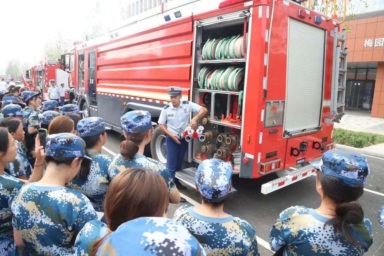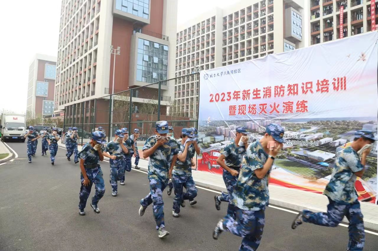 本次演练活动设置消防疏散演习、消防车灭火救援、消防救援设备展示使用、消防知识培训、走进宿舍查隐患等环节。学校特别邀请了莱山区消防救援大队、开发区消防救援大队来校开展多科目演练。活动现场,专业人员用通俗易懂的语言为同学们讲解了防火及逃生技能、灭火器和消防栓的使用方法等消防知识。消防官兵为同学们进行了消防实操、高空救援等科目的讲解和展示。