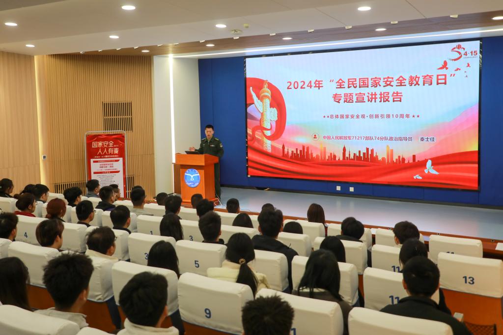 【本站讯】为切实增强师生国家安全意识,4月10日,学校在承先图书馆报告厅以“总体国家安全观,创新引领十周年”为主题开展国家安全教育活动。中国人民解放军71217部队74分队政治指导员秦士佳面向学校青马班学院和各学院学生代表作主题报告。