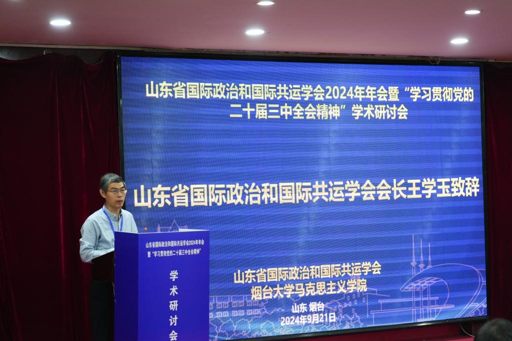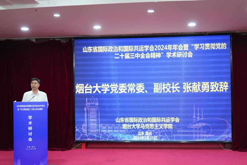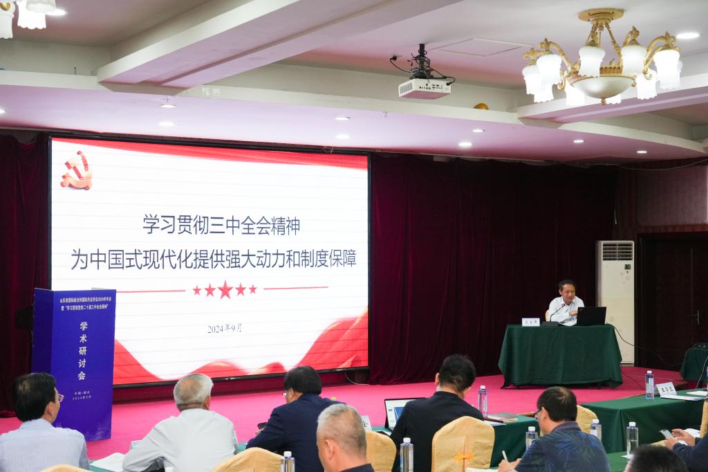 【本站讯】9月21日,山东省国际政治和国际共运学会2024年年会暨“学习贯彻党的二十届三中全会精神”学术研讨会在sunbet申搏官方网站召开。研讨会由山东省国际政治和国际共运学会主办,sunbet申搏官方网站马克思主义学院承办。sunbet申搏官方网站党委常委、副校长张献勇,山东省国际政治和国际共运学会会长王学玉出席研讨会并致辞。来自省内高校的专家学者围绕“学习贯彻党的二十届三中全会精神”进行交流研讨。