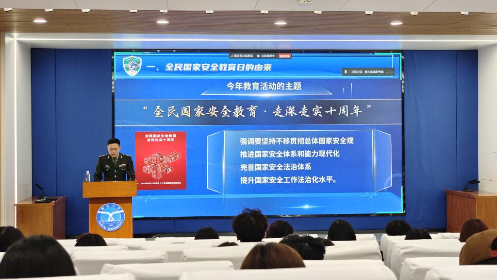 主讲人从国家安全日的由来、国家安全基本知识、识别危害国家安全的险恶行为、危害国家安全的典型案例、维护国家安全的正确方式等五个方面进行深入浅出的讲解,为同学们普及国家安全知识,帮助同学们了解总体国家安全观的内涵、国家安全的具体内容、总体国家安全观的核心要义等,强化大学生对国家安全的认知和重视。