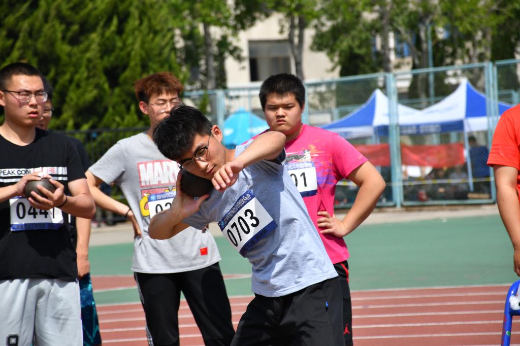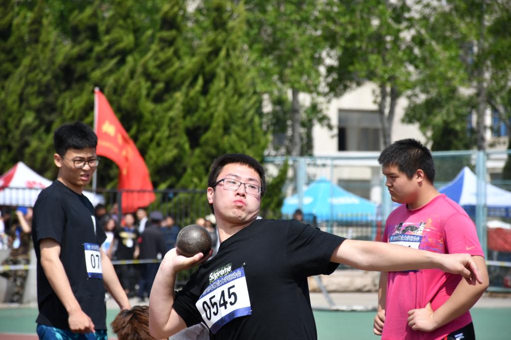 比赛中最激动人心的时刻就是决赛时的八人争冠了。决赛共三轮,比赛一开始,选手们斗志昂扬,动作流利标准,但激烈的竞争导致众多选手内心非常紧张。海洋学院刘国瑞取得本次比赛的第三名,他说道:“今年是第三次参加铅球比赛了,在经历了四十多天的训练后,没能获得冠军,感到有些失落,但终究是友谊第一比赛第二,认识了很多朋友是我这次最大的收获。”