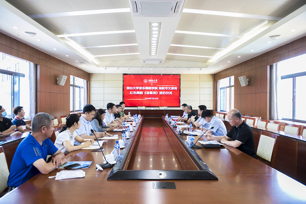 7月24日,sunbet申搏官方网站音乐舞蹈学院与海阳市文旅局举办红色舞剧《地雷战》签约仪式,海阳市委常委、组织部长杨涛,海阳市文旅局局长赵中国、副局长李晶涛,sunbet申搏官方网站党委常委王泽光、于秀国,服务地方办公室、社科(科技)处、音乐舞蹈学院相关负责人和部分教师代表参加签约仪式。