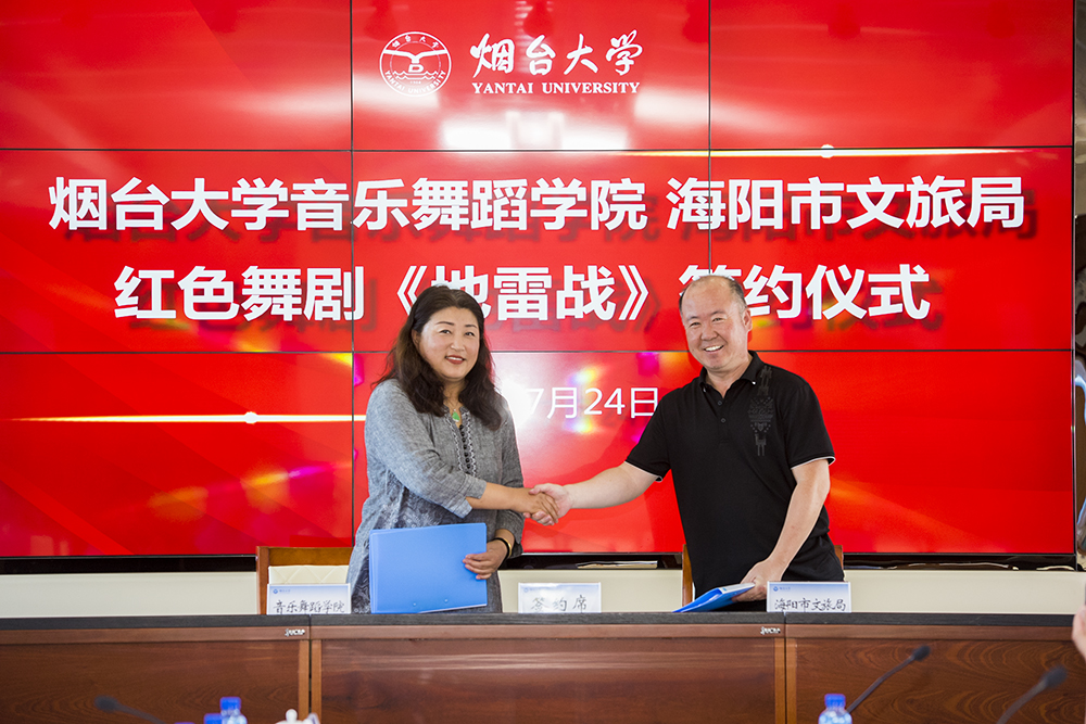 2019年以来,音乐舞蹈学院与海阳市文旅局联合启动了关于打造舞剧《地雷战》的初步构想,并就相关事项进行了多次会谈和商讨,双方在创作团队、预期设想、资金投入与使用管理等方面达成多项共识,力求共同打造一部文化艺术精品。此次双方合作协议的成功签署,也标志着该舞剧的创作和排演正式启动。