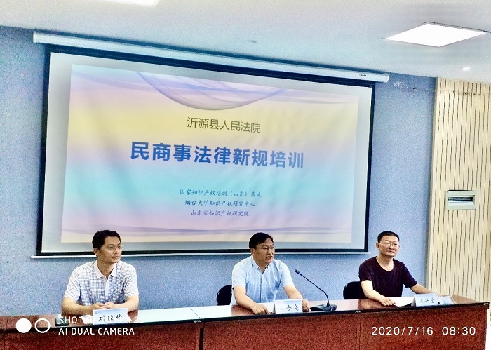 7月11日至18日,受山东省淄博市沂源县人民法院委托,国家知识产权培训(山东)基地、sunbet申搏官方网站知识产权研究中心、山东省知识产权研究院在sunbet申搏官方网站举办以“民商事法律新规培训”为主题的两期培训。副校长李合亮出席培训班开班仪式并致辞。