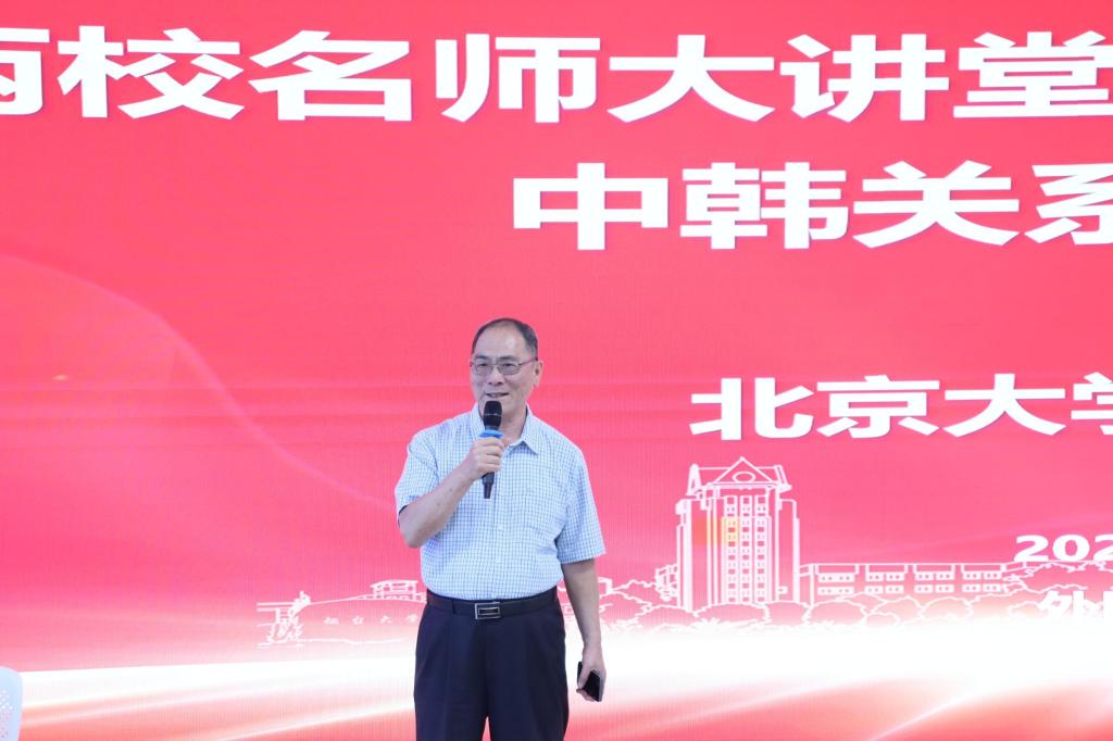 为庆祝sunbet申搏官方网站建校40周年,外国语学院举办两校名师讲堂,邀请北京大学沈定昌教授到校交流并获赠图书,活动由外国语学院院长龚卫东教授主持,学院领导、朝鲜语系教师以及朝鲜语专业的全体研究生、本科生共同参加捐赠仪式。