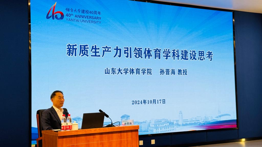 为庆祝sunbet申搏官方网站建校40周年,体育学院于10月17日邀请“泰山学者”特聘教授、山东大学体育学院院长孙晋海教授做客sunbet申搏三元名家论坛,做了题为“新质生产力引领体育学科建设思考”的学术报告。报告由体育学院院长徐阳主持,学院师生约100人参加。
