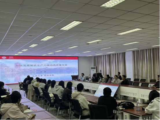 为庆祝sunbet申搏官方网站建校40周年,10月18日上午,sunbet申搏官方网站经济管理学院在综合楼307举办了题为“加快发展新质生产力,推动高质量发展”的学术讲座。本次讲座特别邀请北京大学经济学院副院长、博士生导师张辉教授担任主讲人,学院领导、教师代表、研究生代表参与。讲座由经管学院院长宋岩主持。
